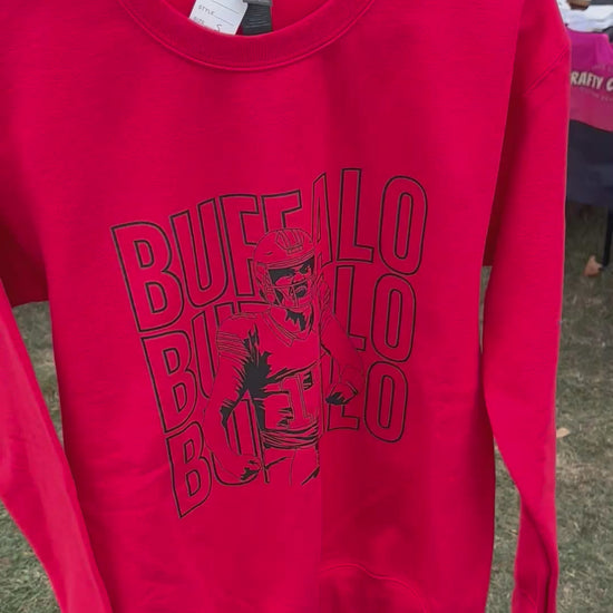 Thats our quarterback! Get this detailed Josh Allen classic celebratory image for game day! Unisex crewneck