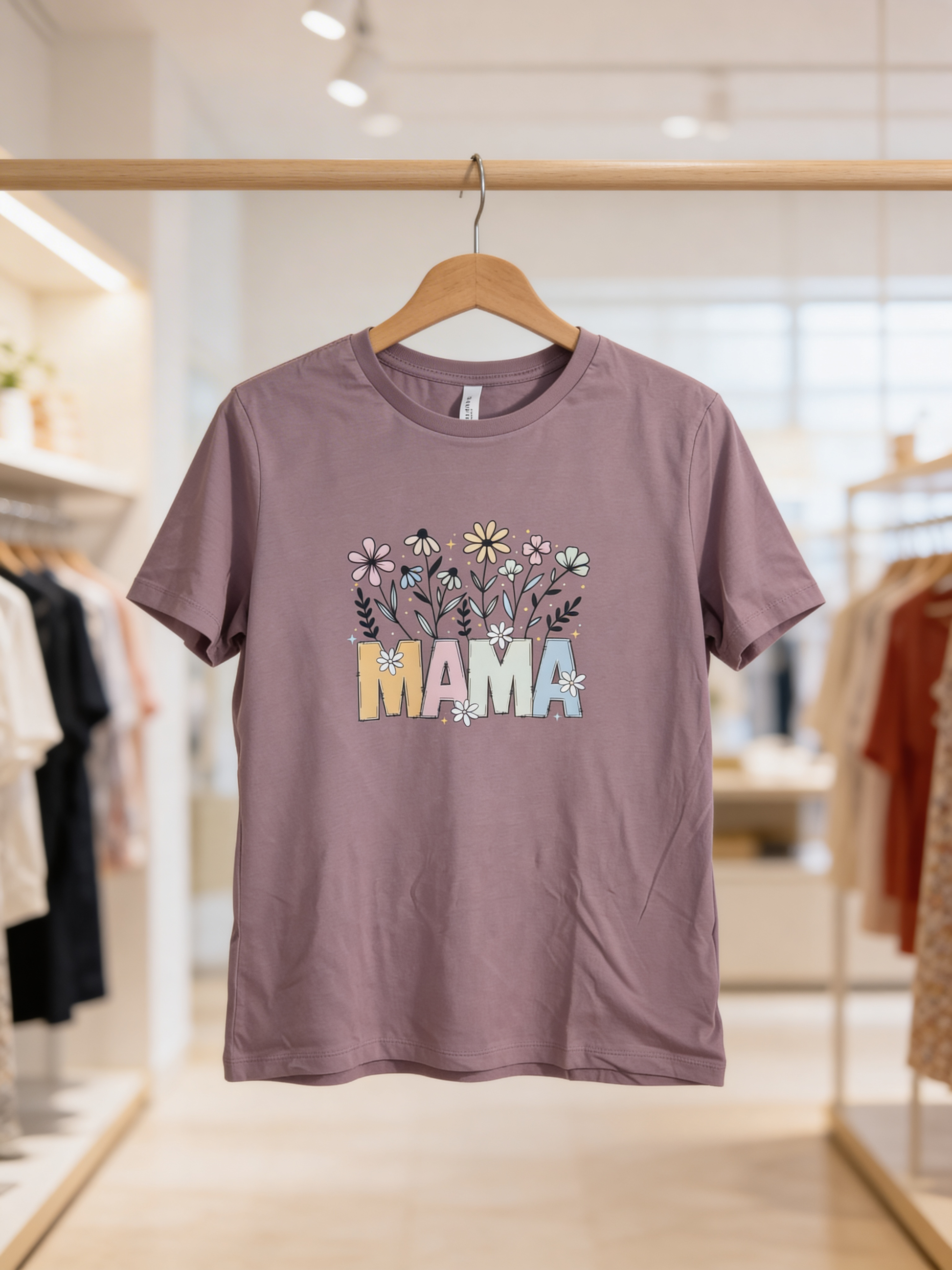 Bright and colorful this floral Mama shirt is one any one is sure to love. Please refer to size chart